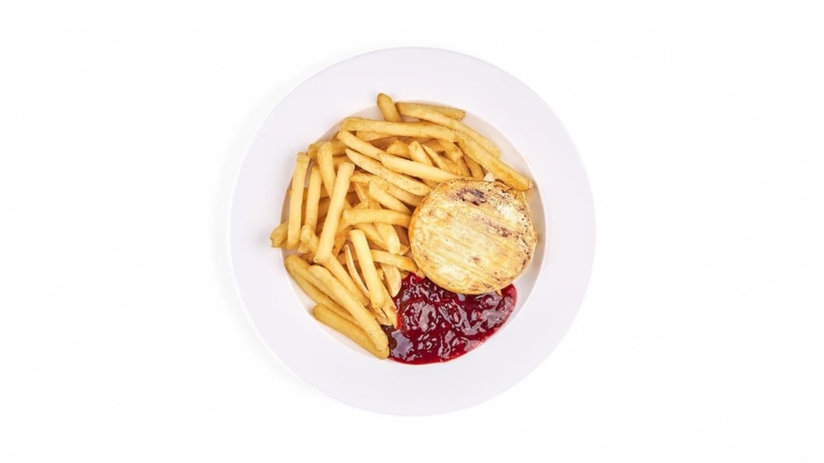 300 g Žemľa, vyprážaný camembert, tatarska omačka, ľadový šalát, paradajky / obsahuje: 1,3,7,11