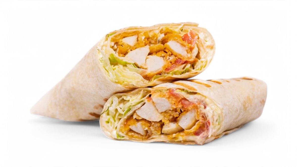400 g tortilla, vypražaný nuggets, omáčka, cibuľa, paradajky, uhorky, kapusta/ obsahuje: 1,3,7