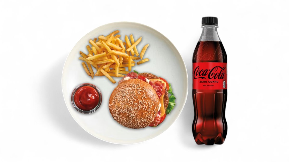 Veľký Burger+hranolky+Coca Cola