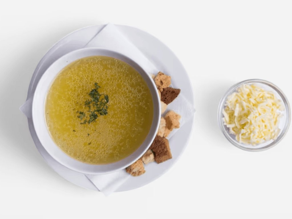 Kurací vývar, syr, domáce Bake Rolls, cesnak