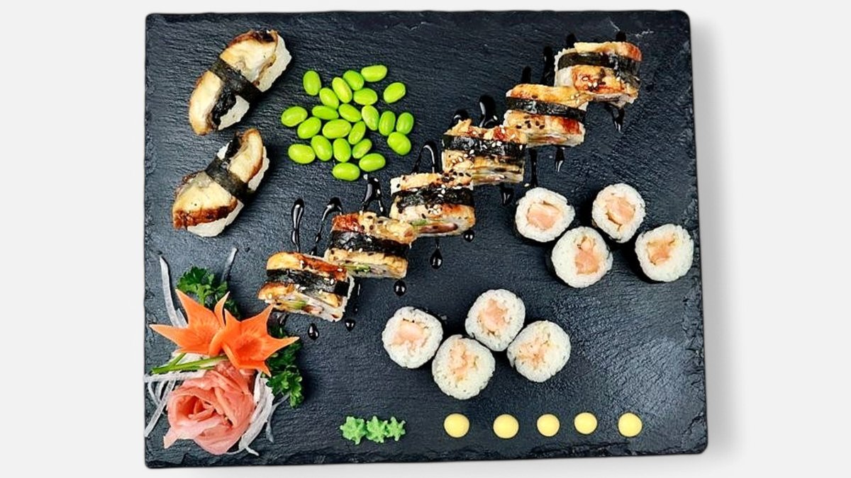 8ks Maki udený losos, 6ks Unagi roll (avokádo, údený losos, syr, )out: vyprážaný úhor, 2ks Nigiri vyprážaný úhor 400 g / obsahuje: -