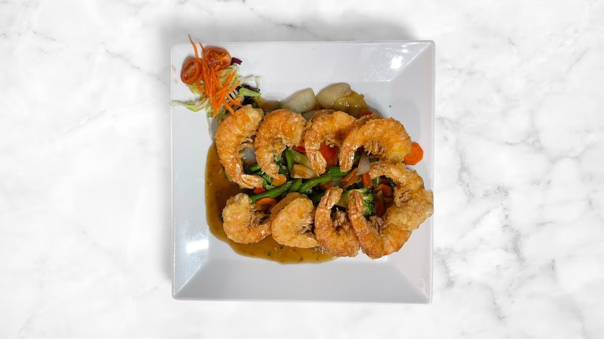 restované sladko-kyslé krevety, paradajková omáčka, jarná cibuľka, sladko kyslá omáčka 250 g / obsahuje: 2