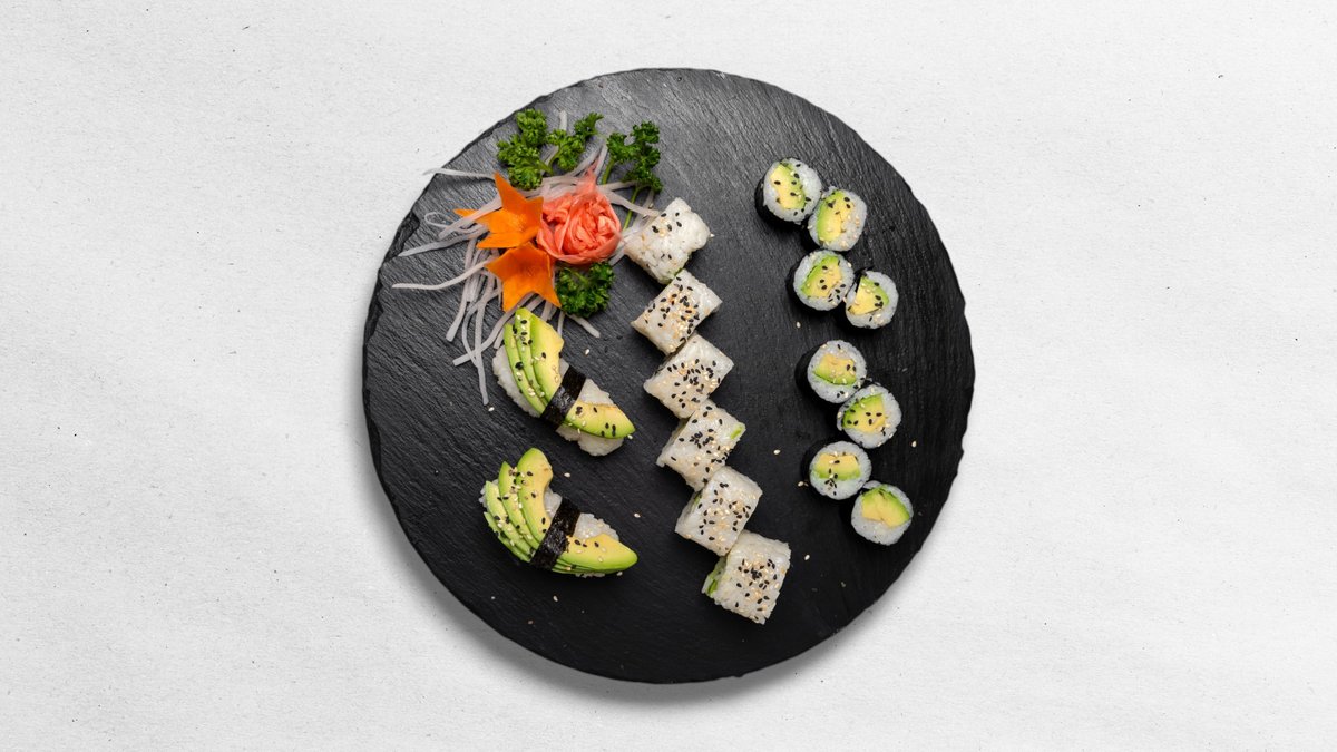 8ks maki avokádo, 2ks nigiri avokádo, 6ks Veggie roll (in: Avokádo, out: sezam) 400 g / obsahuje: -