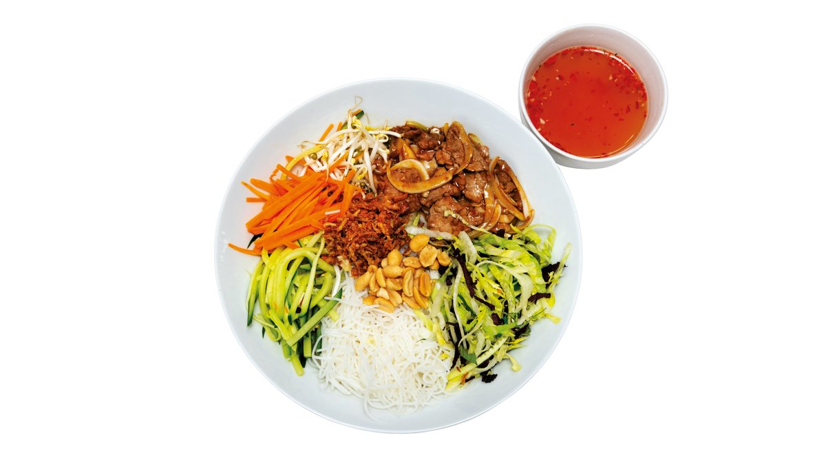 bravčové mäso, ryžové rezance, šalát, bravčové mäso , ryžové rezance ,šalát ,mrkva , uhorka , arašidy , jarná cibuľka , rybacia vietnamská omáčka 450g / obsahuje: 3,5,6,11