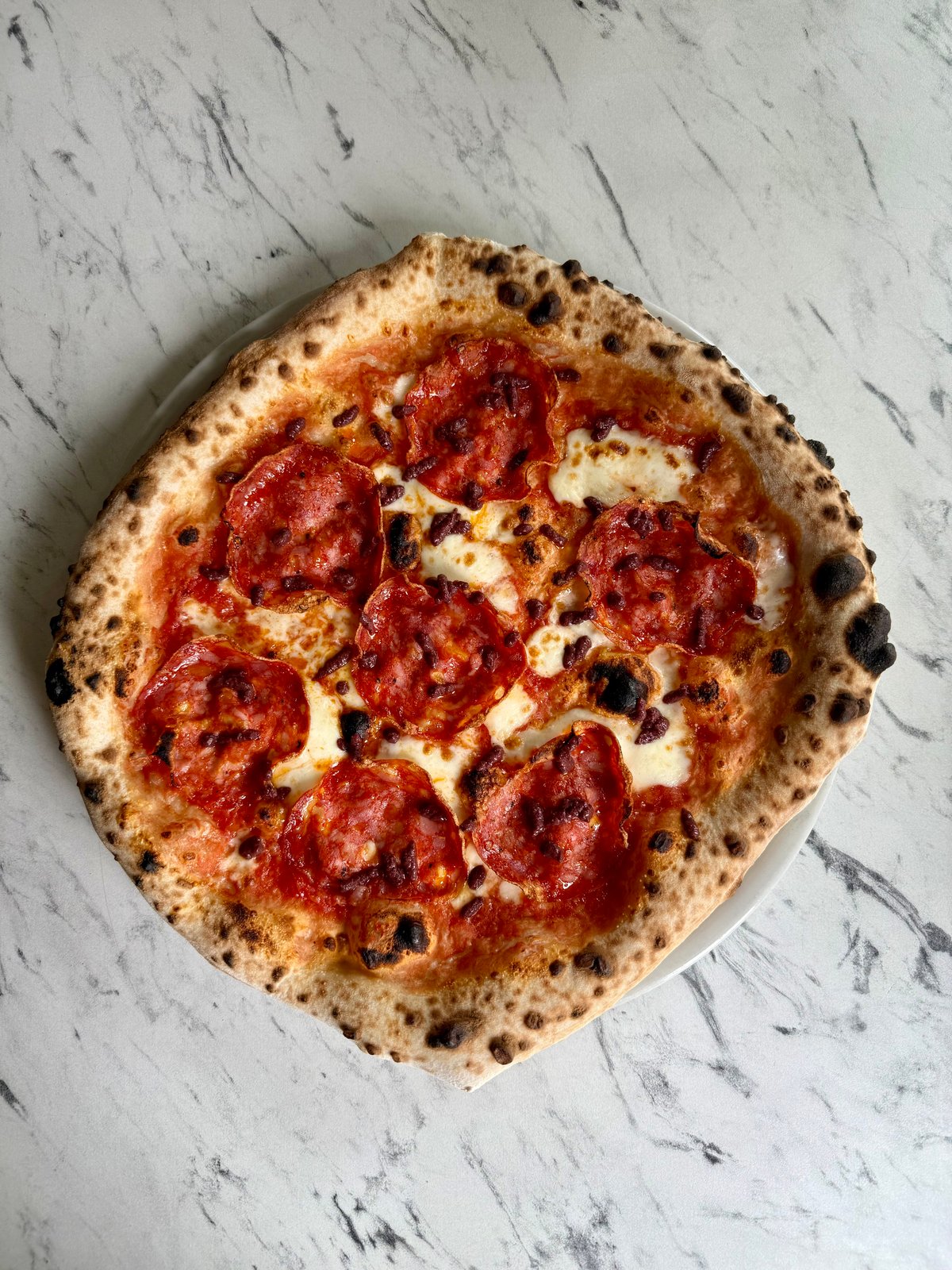 paradajkový základ San Marzano, mozzarella fior di latte, parmezán, Ventricina 400g / obsahuje alergény: 1,7