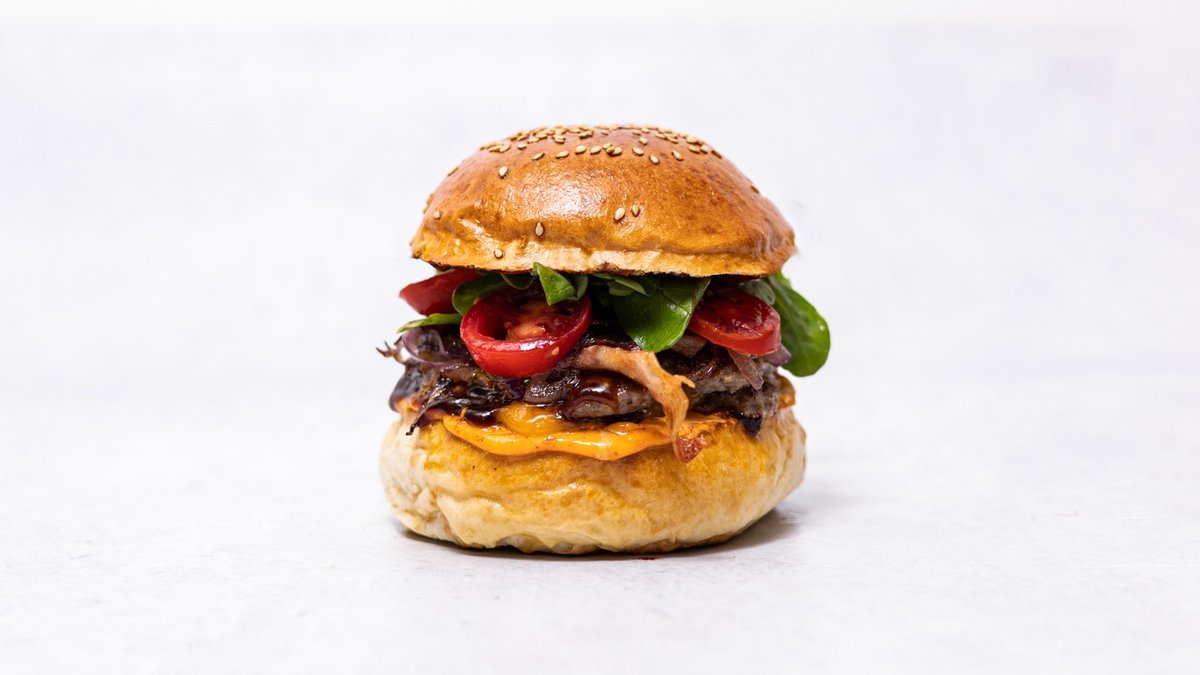 170g hovädzie mäso, corgoň mayo, domáca maslová žemľa, syr Cheddar, pikantná saláma, jalapenos, cherry paradajky, šalát, chilli omáčka 360g / obsahuje: 1, 3, 7, 10, 11