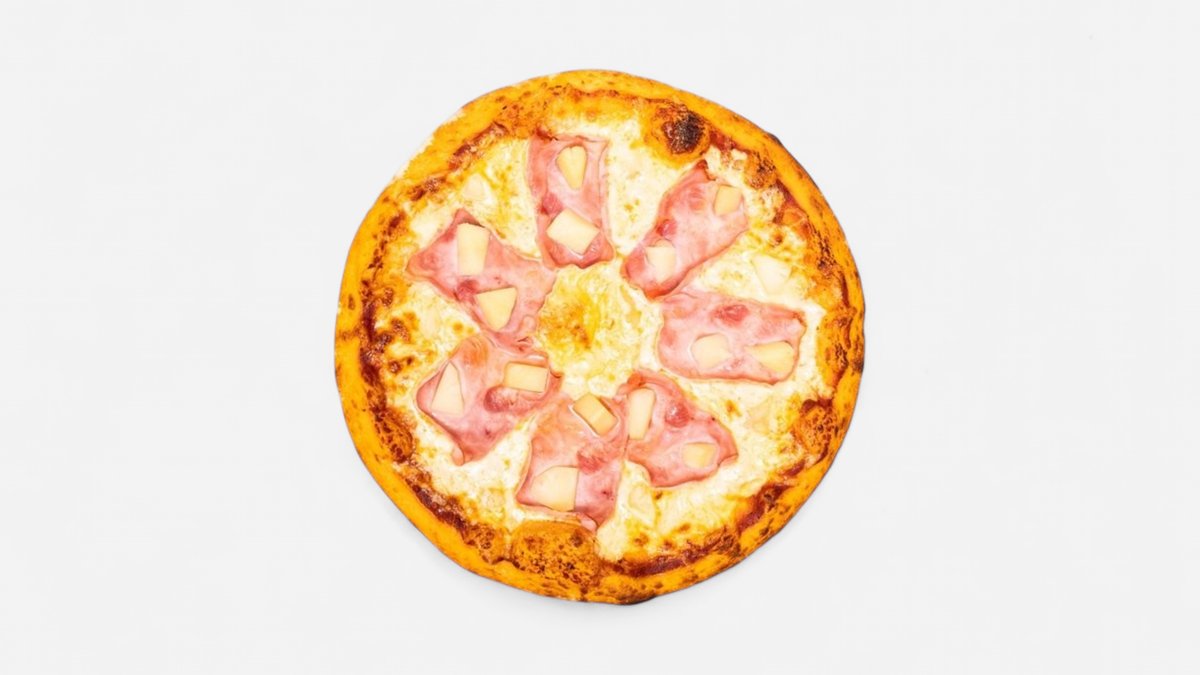 paradajkový alebo smotanovo-syrový základ,1/2 mozzarella, 1/2 eidam, šunka, ananás 450 g / obsahuje: 1, 7