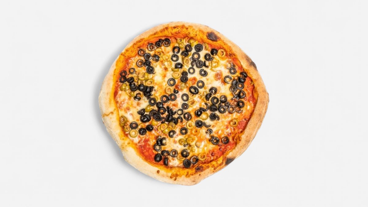 paradajkový alebo smotanovo-syrový základ,1/2 mozzarella, 1/2 eidam, šunka, slanina, niva, cesnak, olivy 480 g / obsahuje: 1, 7