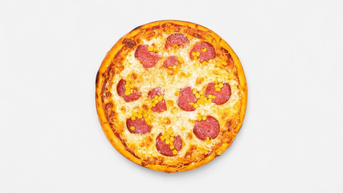 paradajkový alebo smotanovo-syrový základ, 1/2 syr Mozzarella, 1/2 syr Eidam, šunka, kukurica 430 g / obsahuje: 1, 7