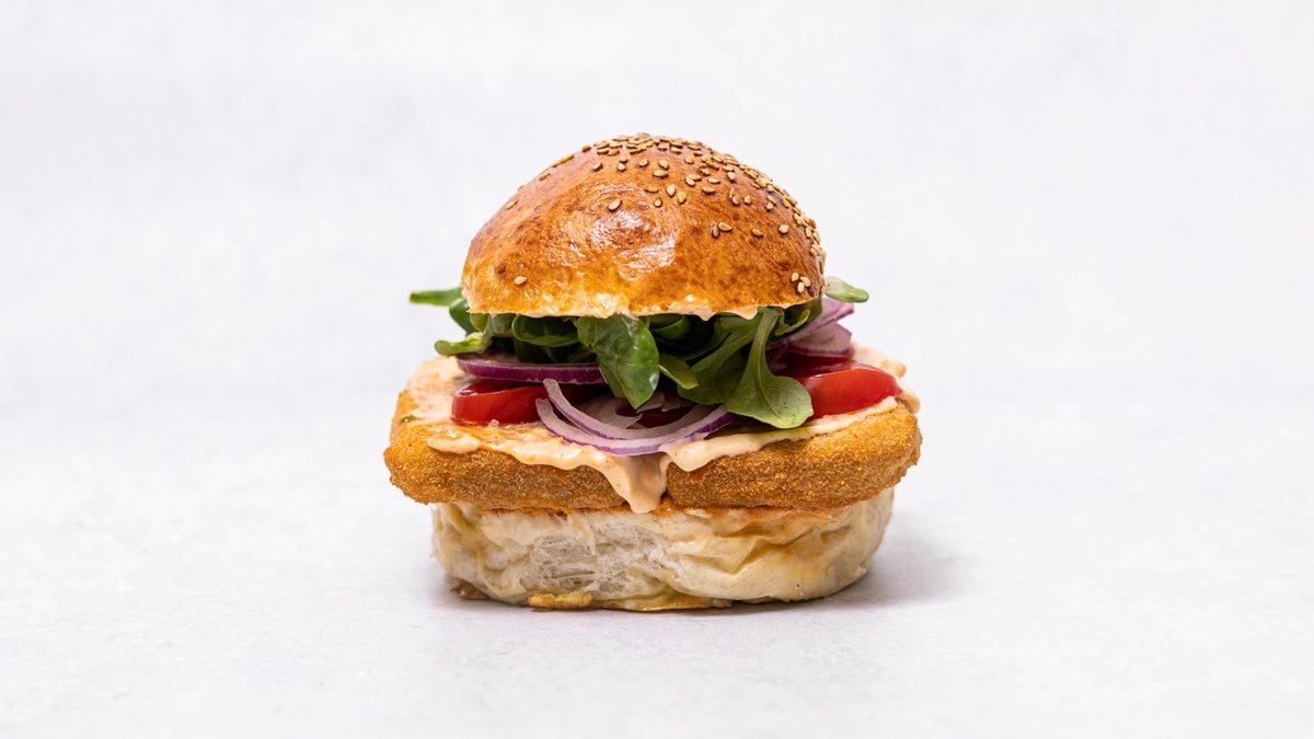 170 g hov. mäso, corgoň mayo, domáca maslová žemľa, oštiepok, cherry paradajka, karamelizovaná cibuľa, šalát, kôprová omáčka 400 g / obsahuje: 1, 3, 7, 10, 11