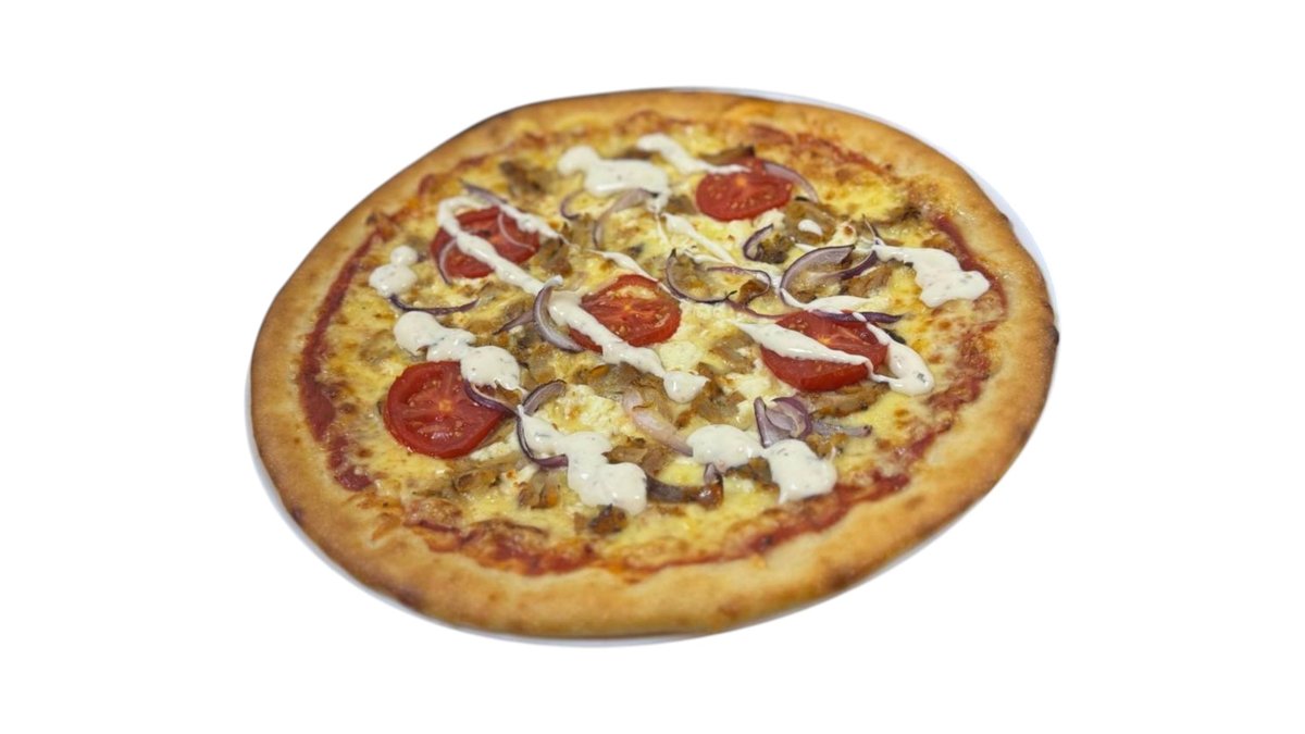 paradajkový alebo smotanovo-syrový základ, 1/2 mozzarella, 1/2 eidam, 100g kuracieho mäsa, balkánsky syr, paradajka, cibuľa, jogurtový dressing / obsahuje: 1, 7