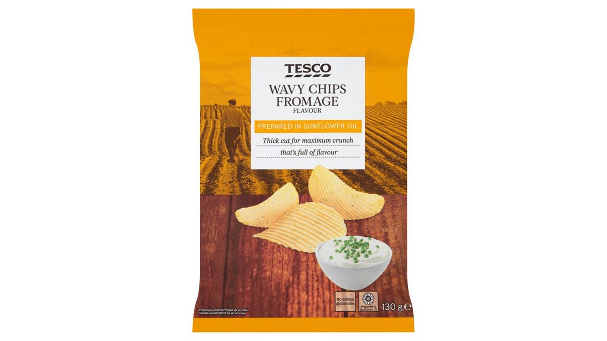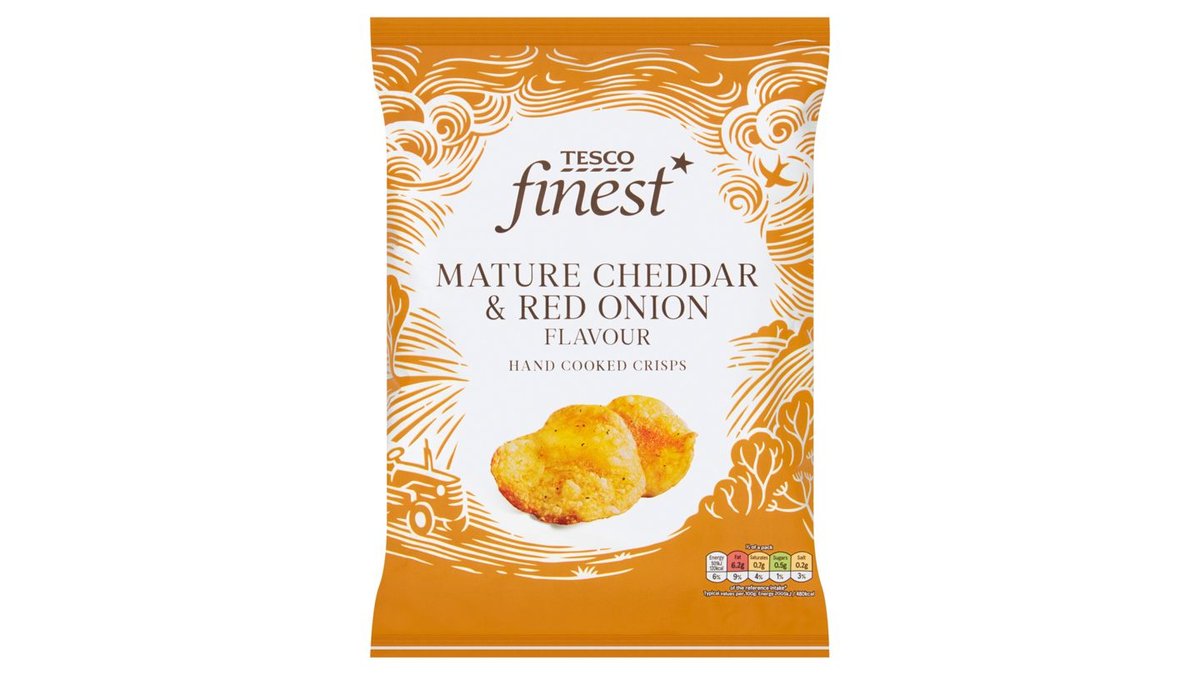 Tesco Finest Smažené zemiakové lupienky s príchuťou syra cheddar a červenej cibule 150 g
