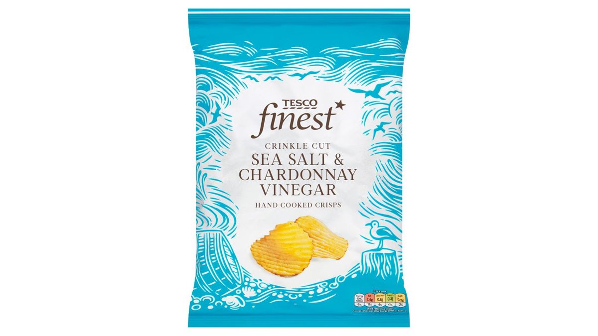 Tesco Finest Smažené zemiakové lupienky s príchuťou vínneho octu Chardonnay, s morskou soľou 150 g