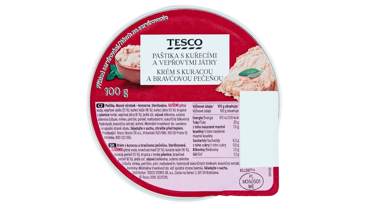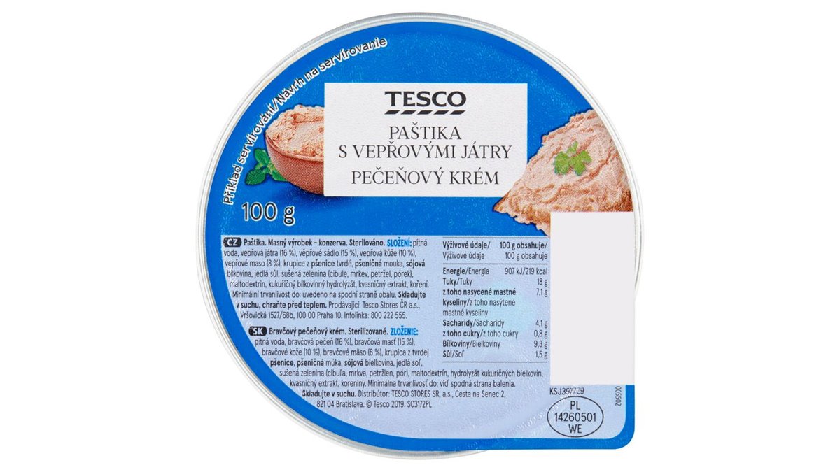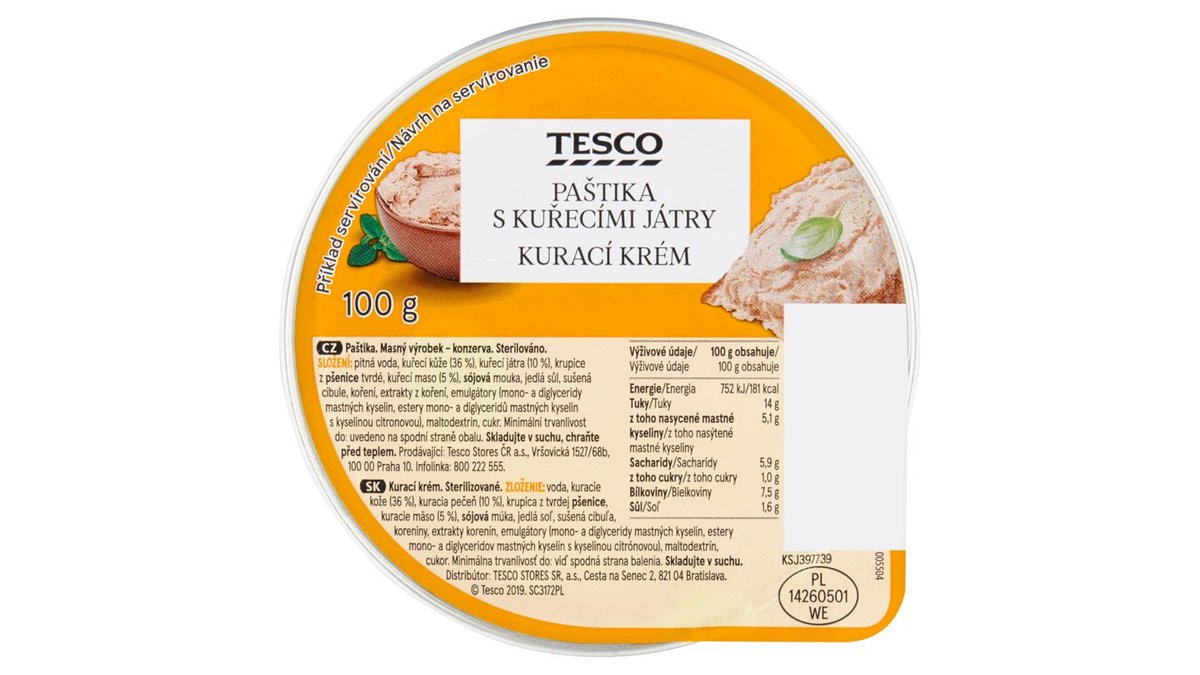 Tesco Krém s kuracou a bravčovou pečeňou 100 g