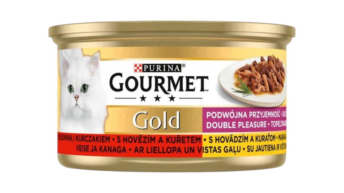 Gourmet Gold double pleasure s hovädzím a kuraťom, krmivo pre mačky, 85 g