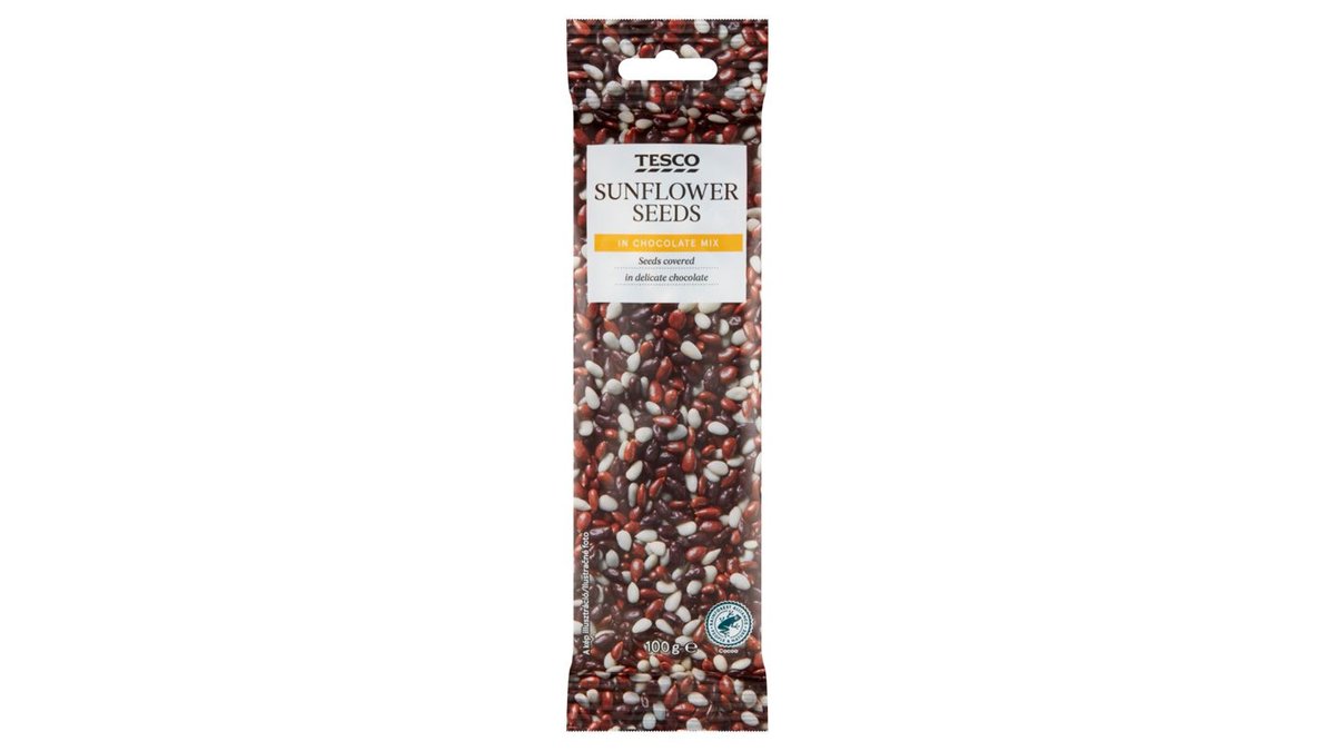 Tesco Lúpané slnečnicové semená v mliečnej, horkej a bielej čokoláde 100 g
