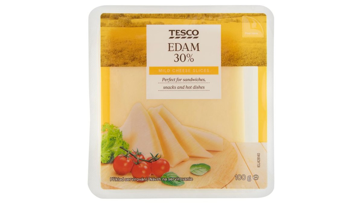 Tesco Polotvrdý zrejúci polotučný syr plátky 30% 100 g