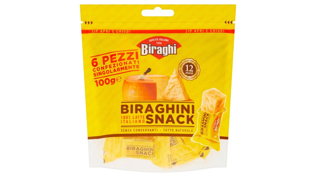 Biraghi Gran Snack zrejúci stredne tučný porcovaný tvrdý syr 6 x 16,67 g