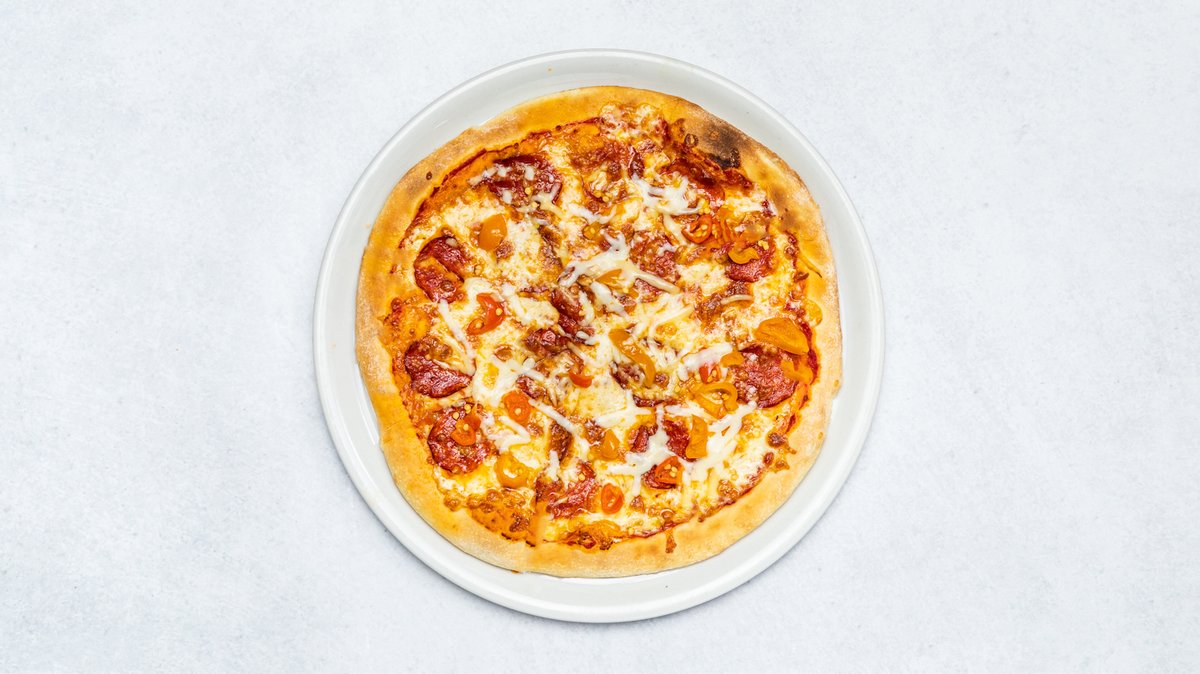 1185g cesto, paradajkový základ, pikantná saláma, chilli papričky, jalapeños, chilli omáčka, paradajka, kukurica, cibuľa, syr, oregano