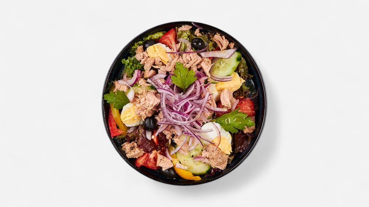 420g ľadový šalát, rukola, tuniak mozzarella, cibuľa, cherry paradajky balsamico ocot, olivový olej