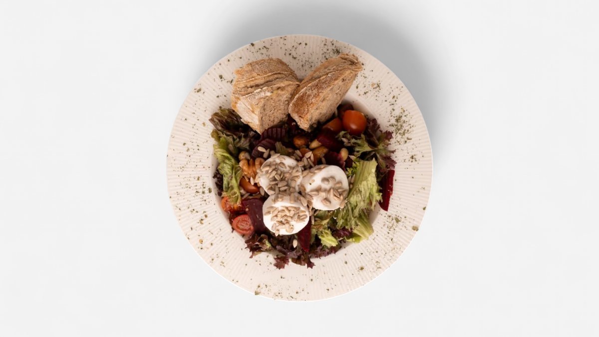 Svieži mix poľníčka a baby špenátu doplnený šťavnatou cviklou, cherry paradajkami a jemne roztečeným grilovaným enciánom. Dochutený kešu orieškami, olivovým olejom a balsamico krémom.