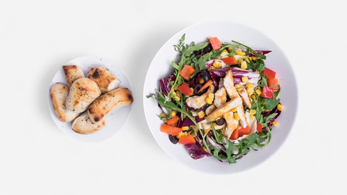 415g rukola, kuracie prsia, cherry paradajky, červená cibuľa, parmezán, kukurica, čierne olivy, provensálske korenie