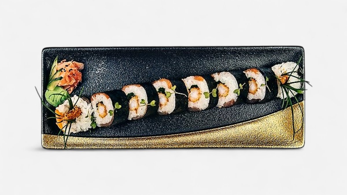 maki: 3ks uhorka, 3ks avokado; tempura: 10ks losos
