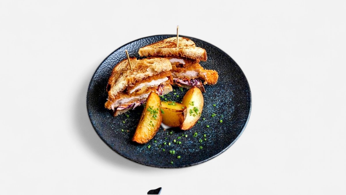 ázijský coleslaw, kváskový sendvič, tonkatsu omáčka, smažený zemiak 150g/200g / obsahuje: 1,3,4,6,7,11,14