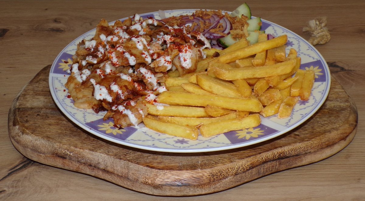 Kuracie mäso, turecká placka, zelenina, hranolky, dresing, chilli