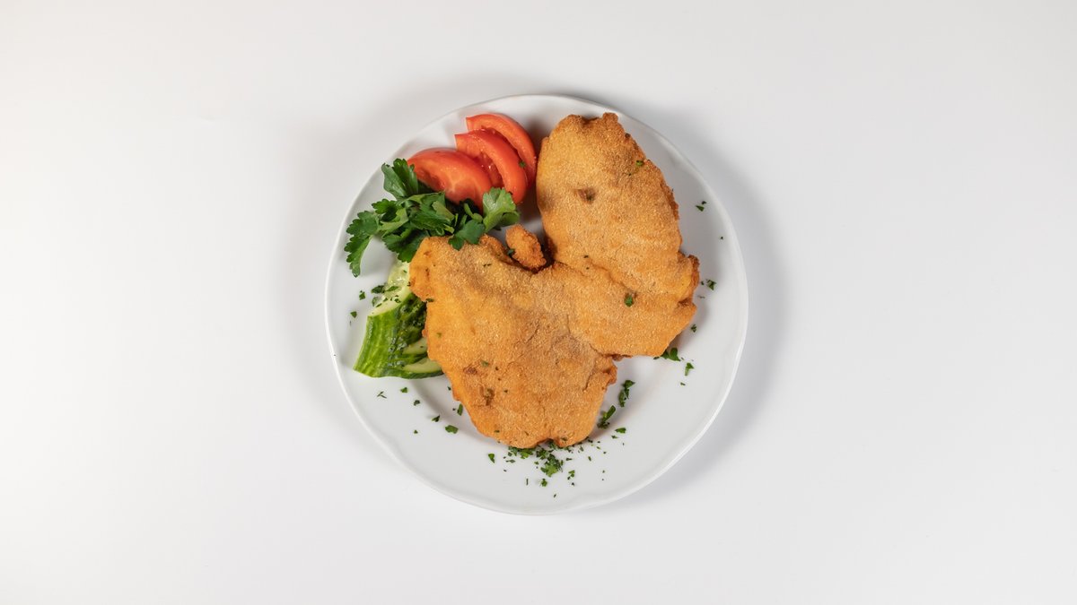 Vyprážaný bravčový rezeň, zeleninová obloha