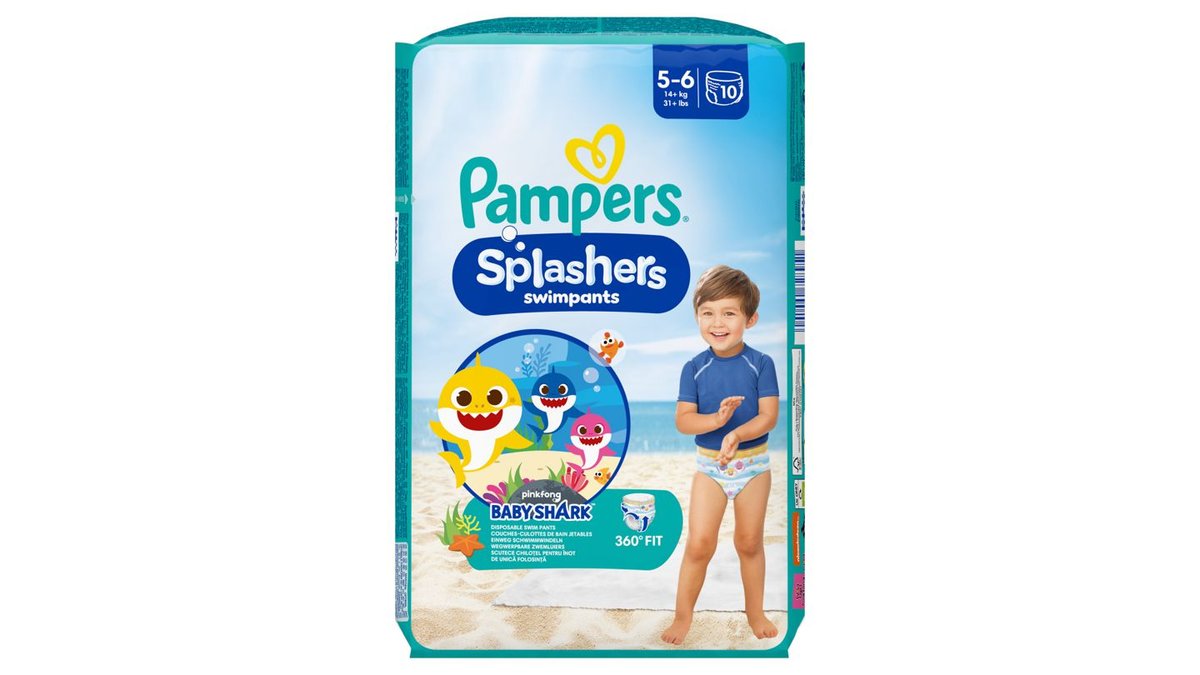 Pampers Splashers Edícia Baby Shark 5, 10 Jednorazových Plienkových Nohavičiek Na Plávanie, 14kg+
