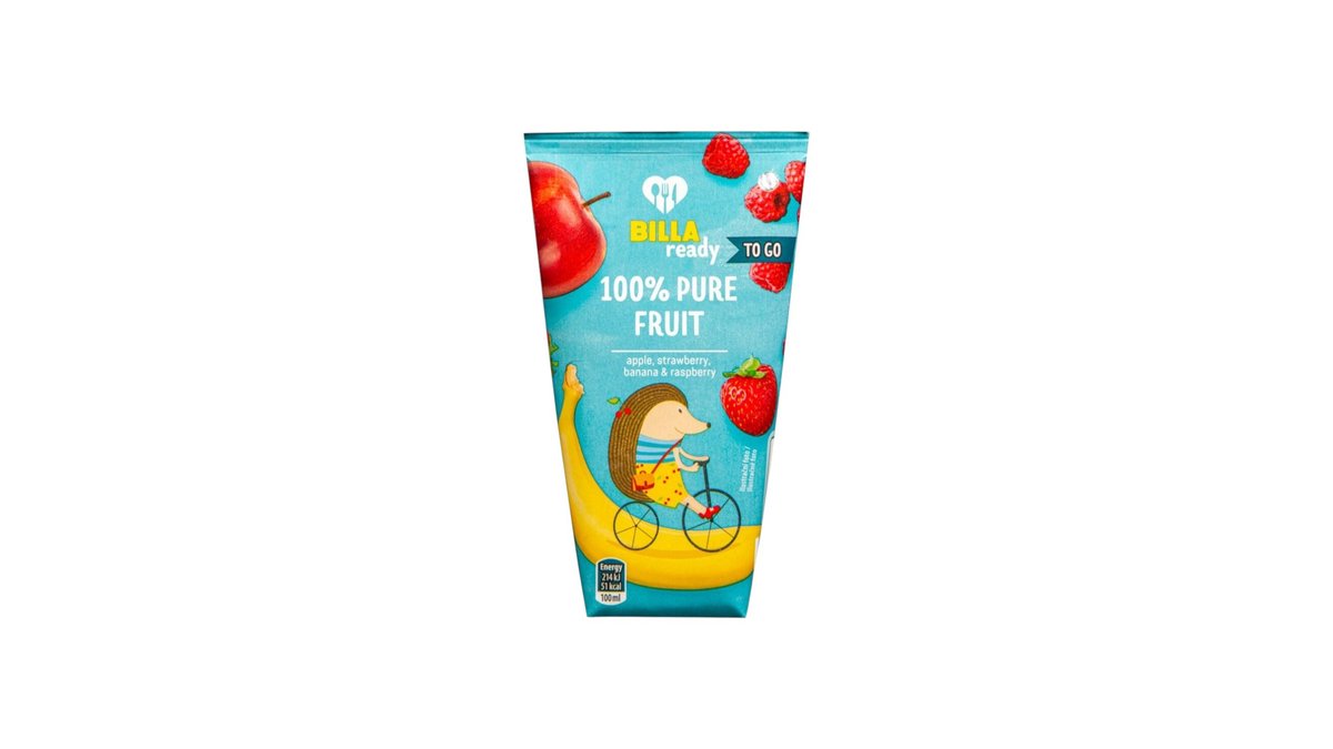 BILLA READY 100% Džúsik jablko, jahoda, banán & malina 200ml