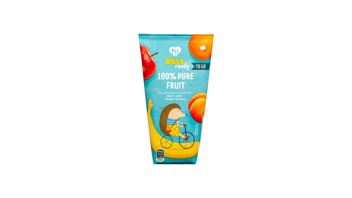 BILLA READY 100% Džúsik broskyňa, pomaranč, jablko & banán 200ml