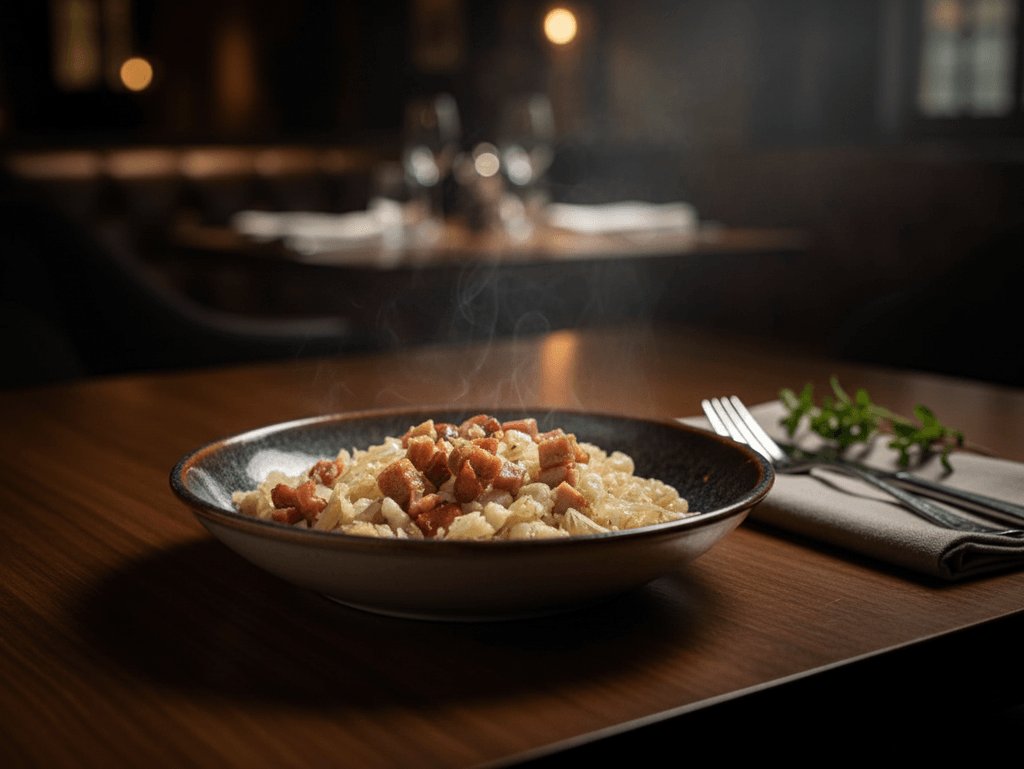 Bryndzové halušky so slaninou, klobásou a údeným oštiepkom