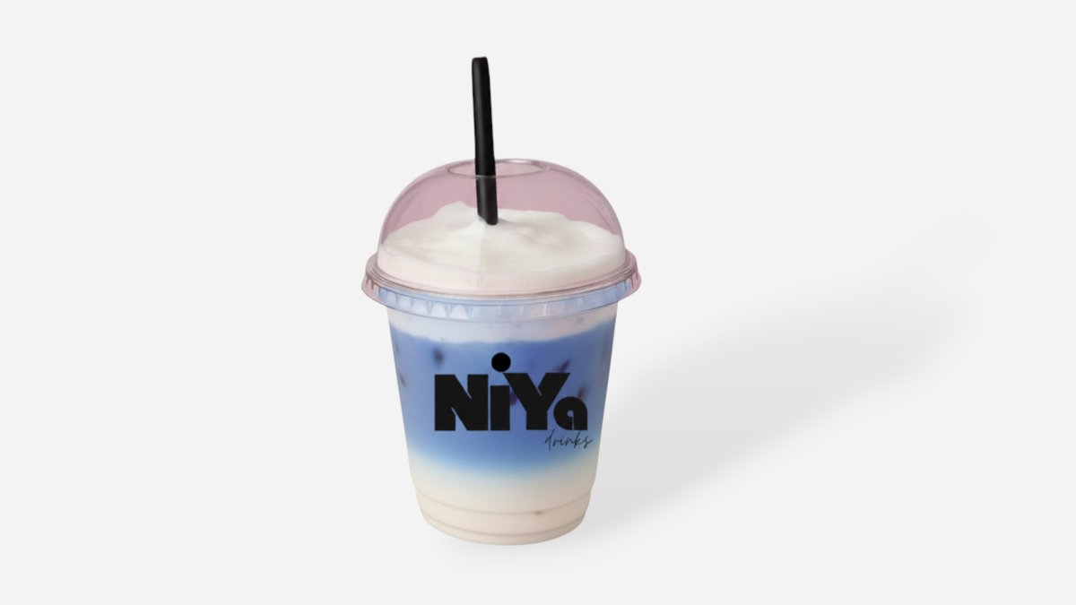 2g prášok z kvetov Butterfly Pea, mlieko a sirup podľa výberu 300 ml