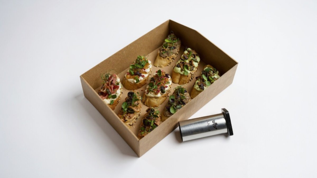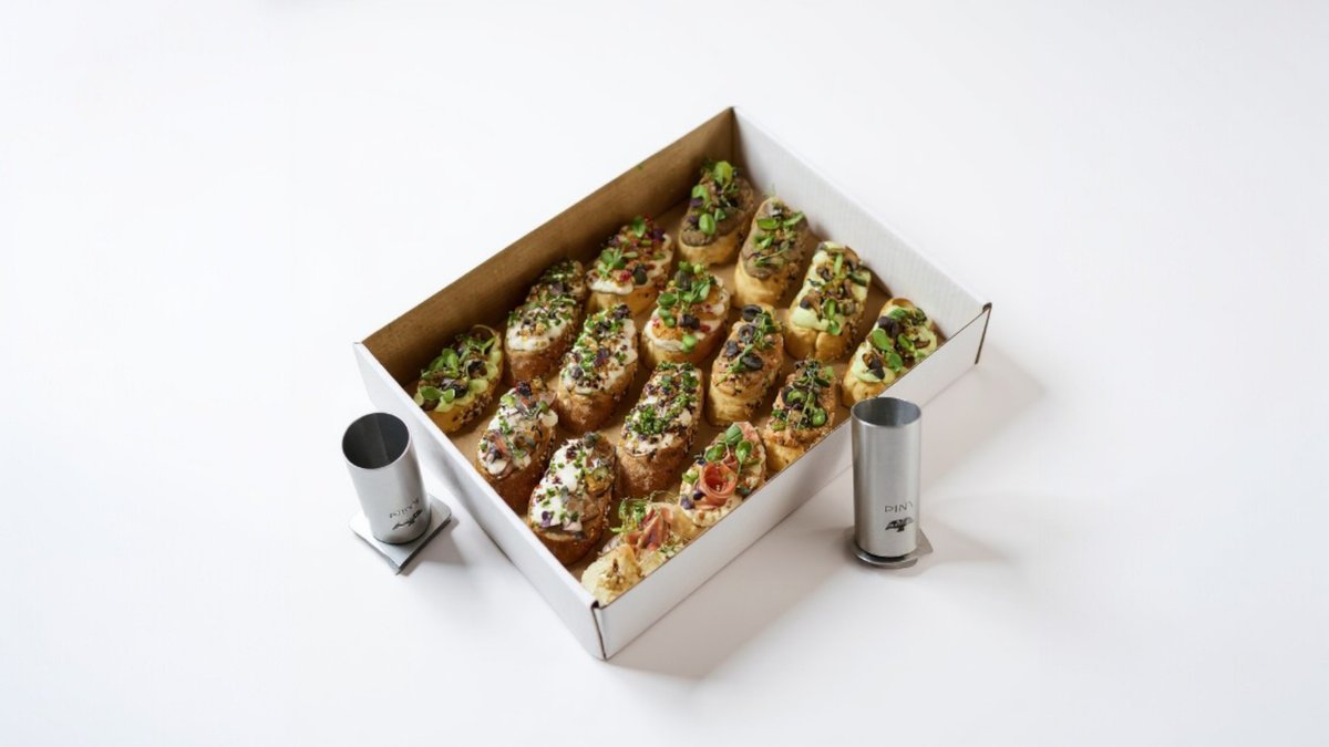 6x Philadelphia krém s modrým syrom, hruškové chutney 6x Kačacia paštéta s portským vínom a čučoriedkovým gélom 6x Lososový tatarák, olivový prach