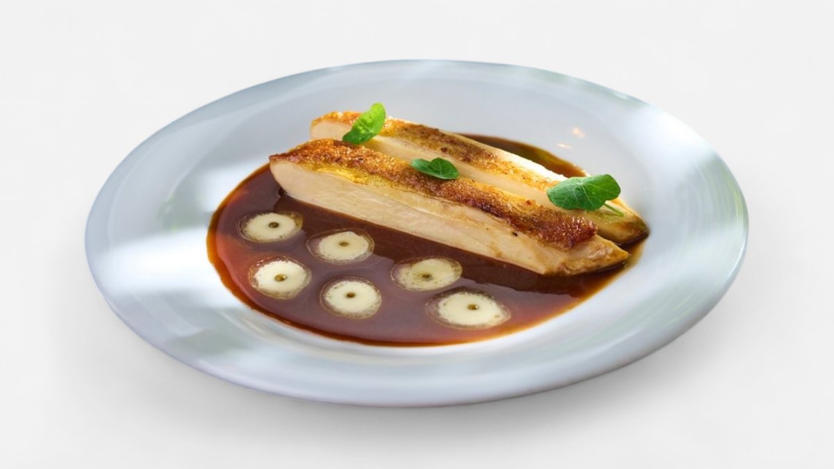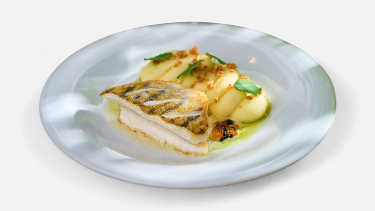 Pečený filet zo zubáča, beurre blanc krém, kaviár, zemiakovo-zázvorové pyré