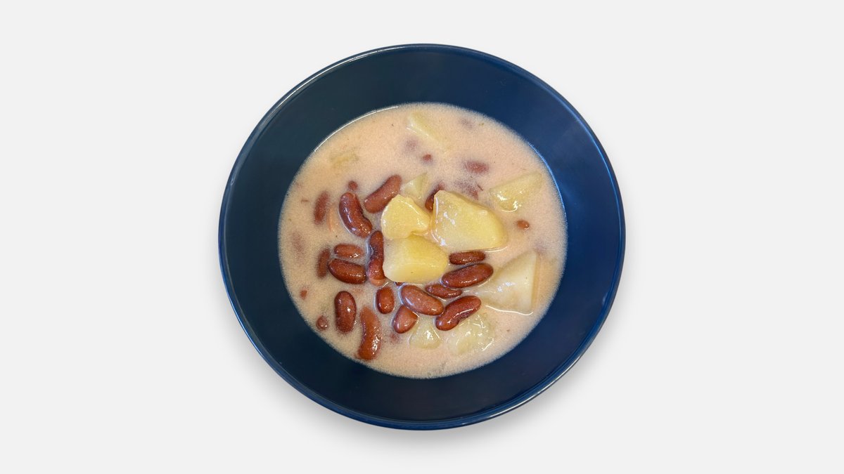 Mliečna sladko-kyslá polievka s bielou fazuľkou s klobáskou a zemiakmi Objem : 450ml, A: 7,12