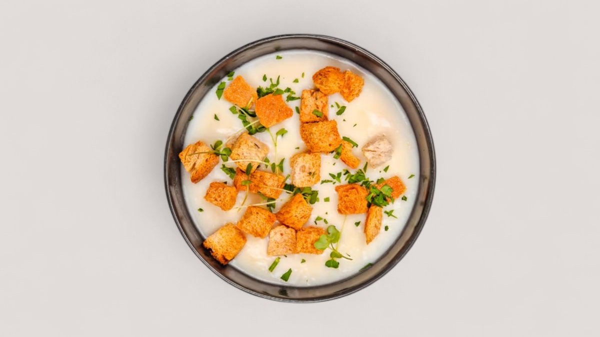 Podávaný s goudou a chrumkavým krutónom. 0.33l Alergény (1,7,9)