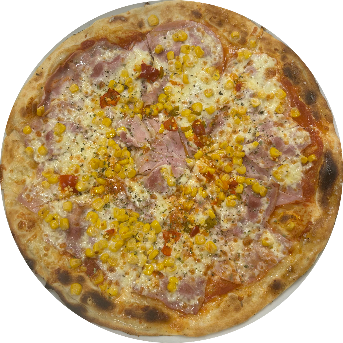 rajč. omáčka, mozzarella, šunka, kukurica 400g / obsahuje: 1,7 Ilustračná fotografia