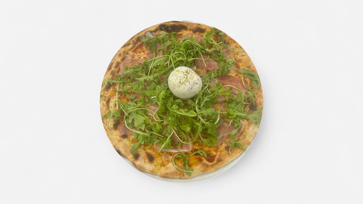 rajč. omáčka, mozzarella, prosciutto, rukola, cherry paradajky 400g / obsahuje: 1,7