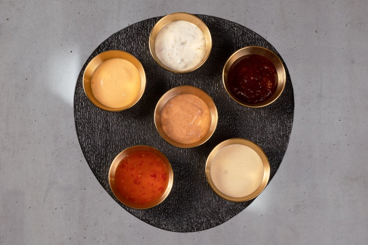 5ks Cheddarove uhlíky, 5ks Nachos syrové trojuholničky, 5ks Cheddarove nugetky s Jalapeňo, 2ks dressing podľa vlastného výberu
