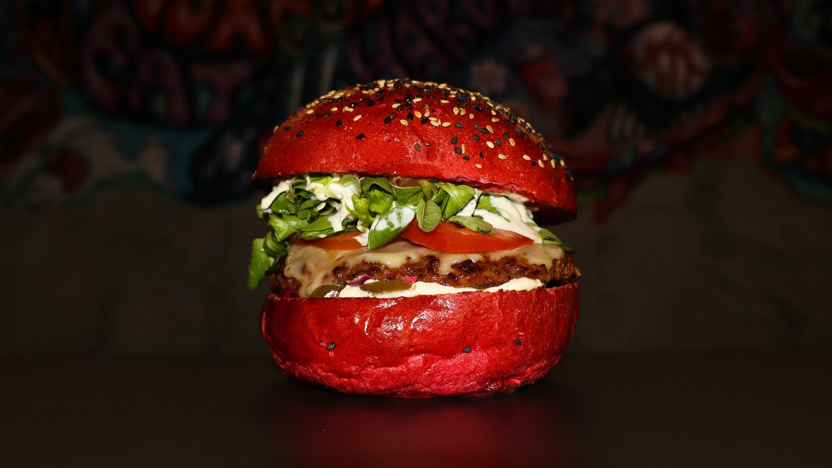 Brioš červená žemľa, 100% 150g hovädzie mäso, Monterey Jack, nakladané jalapeño papričky, paradajka, grilovaná červená cibuľka, polníček, jalapeño dresing. 360g) /1,3,7,10,11/