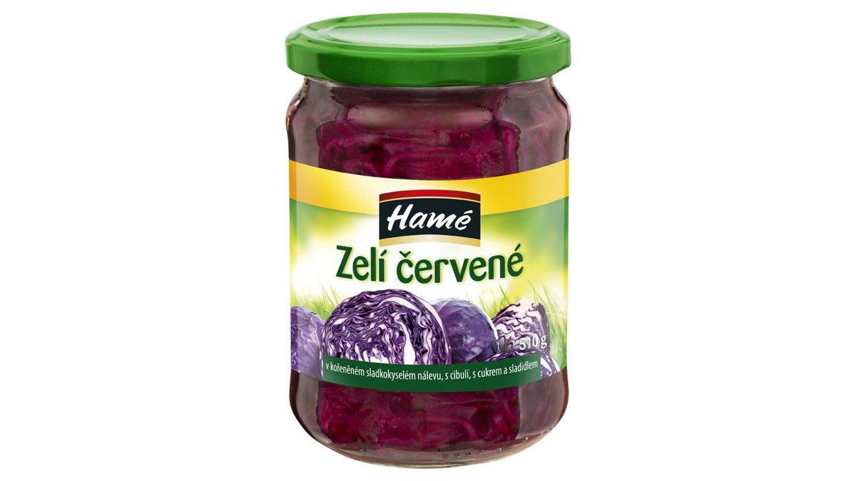 Hamé Červená kapusta pasterizovaná v korenenom sladkokyslom náleve s cibuľou 510 g