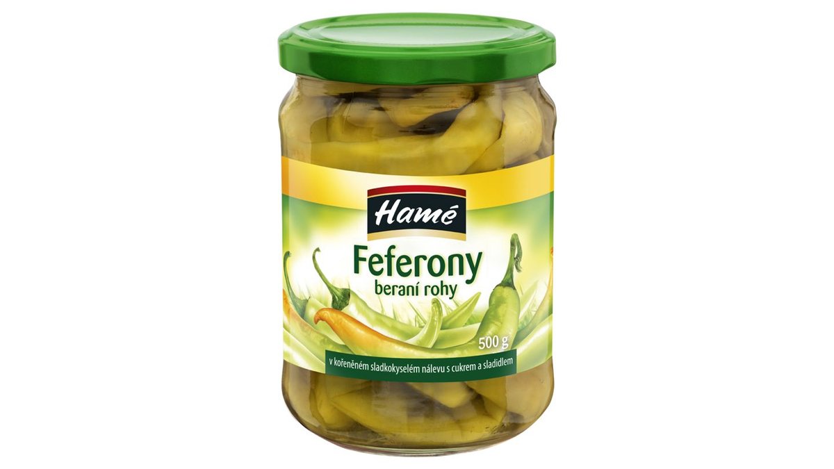 Hamé Sterilizované feferóny guľaté v korenenom sladkokyslom náleve s cukrom a sladidlami 320 g