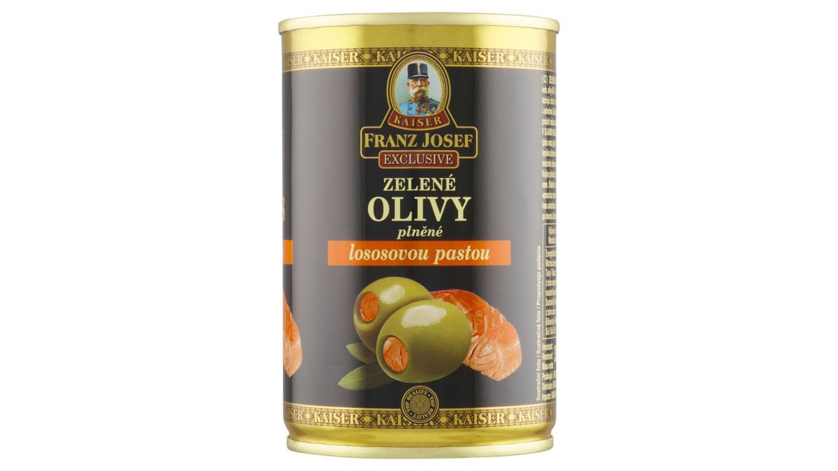 Franz Josef Kaiser Exclusive Zelené olivy plnené lososovou pastou v slanom náleve 300 g