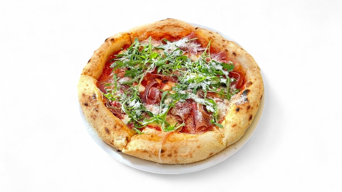 paradajkový základ, proscuitto, parmezán, mozarella, rukola obsahuje: 1, 7