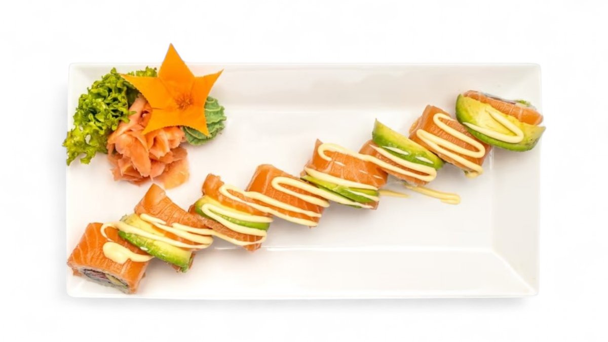 Sushi rolka s lososom v tempure, avokádom, chilli korením, majonézou a ocean omáčkou 8ks (1,3,4,6,10,11)
