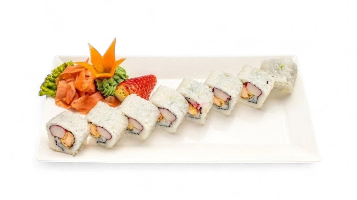 Losos v tempure, avokádo, uhorka, japonská majonéza, osean omáčka. 8ks (1,3,4,6,10,12)