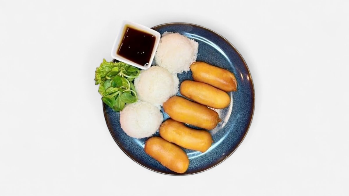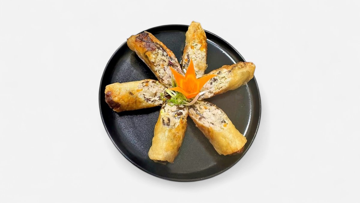Jarné závitky s mletým bravčovým mäsom, zeleninou, ázijskými hubami, sklenenými rezancami, vajíčkom, chrumkavé v jemnom obale 3ks / obsahuje: 1,2,3,4,11